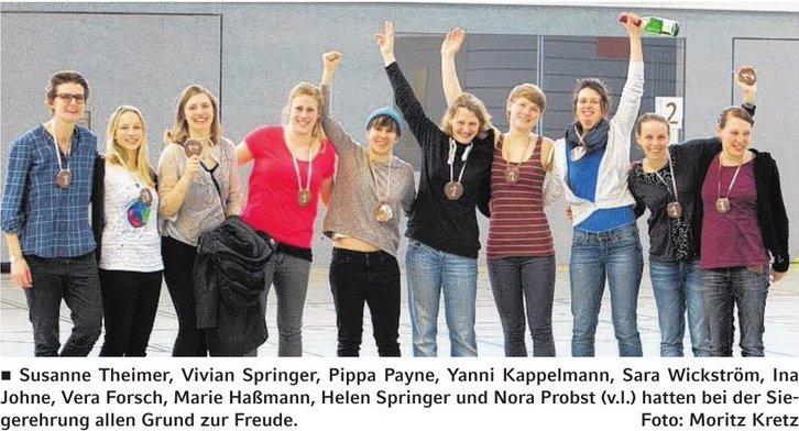 Erfreulicherweise wird auch ein Farbfoto des erfolgreichen Frauenteams von der Siegerehrung abgebildet, das Moritz Kretz von den ausrichtenden Heidelbergern zur Verfügung stellte.