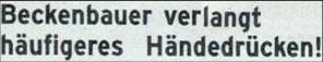 Da ist mir in der Frankfurter Allgemeinen Sonntagszeitung eine Notiz unter der Rubrik „Schluss für heute“ untergekommen, wonach „Kaiser“ Franz Beckenbauer die Leitung der „Task Force Football“ des Weltfußballverbandes Fifa übernommen hat. Michael Eder schreibt, es liege bereits der erste Reformvorschlag auf dem Tisch, wonach sich die Spieler öfter die Hand reichen sollten.