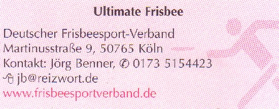 Im neuen Vereinsheft des TV Dellbrück „Turnen und Sport“ (Ausgabe 3 2012) ist Ultimate Friosbee sogar die Titelgeschichte! Besonders gefreut hat mich das spontane Interesse der Schüler, möglichst bald auf einem Turnier mitspielen zu wollen! Das sollten wir ermöglichen können.