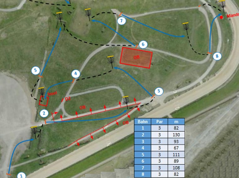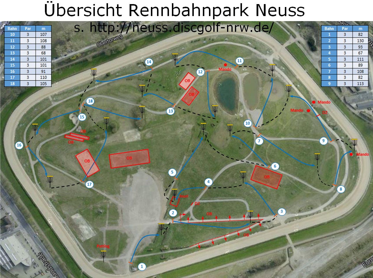 Hier die Gesamtübersicht aller Bahnen mit Längenangaben, von discgolf-nrw.de: