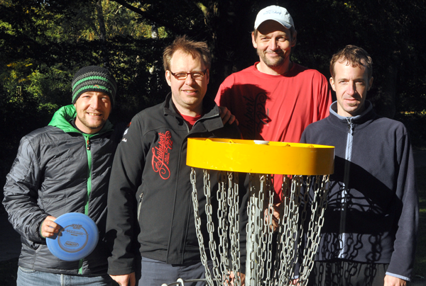 Vier Teams nahmen teil, darunter zwei aus Westfalen, GW Marathon Münster sowie Discgolf Lünen Lakers, und zwei aus dem Rheinland, Discgolf Niederrhein (mit Sitz in Neuss, Foto links) sowie der ASV Köln. Mit ASV-Abteilungsleiter Thomas Boensch, Bernd Pröschold und Jörg Benner waren drei der vier Kölner bereits im Vorjahr angetreten. Als vierter Spieler gesellte sich Benno Kerkloh, Turnierdirektor der Disc Days Cologne, hinzu (diese finden in ihrer 10. Auflage übrigens am 11. und 12. Juni 2016 statt).