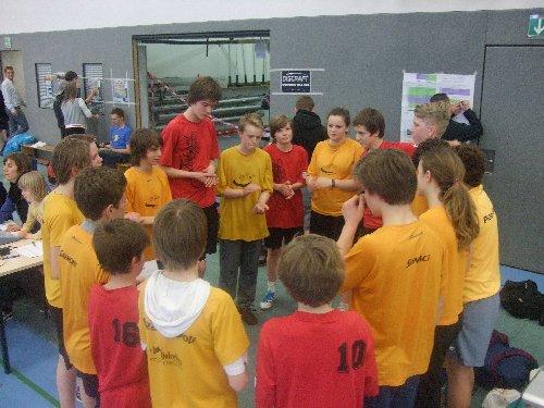 Wow! Was für eine begeisternde Veranstaltung! Ich habe die Gelegenheit genutzt, zusammen mit meiner Familie am ersten Turniertag die Junioren-DM 2012 im Hallen-Ultimate in Münster zu besuchen. Zum einen ist der Weg von Köln nach Münster nicht sehr weit (immerhin haben mehr als 40 Teams von München bis Hamburg den Weg auf sich genommen), zum anderen hatte mich Turnierdirektor Martin Reckmann (2. Vorsitzender der DJK Grün-Weiß Marathon Münster, links im Bild) zur abendlichen Eröffnungszermonie eingeladen. Die Finalergebnisse sind hier zu finden.