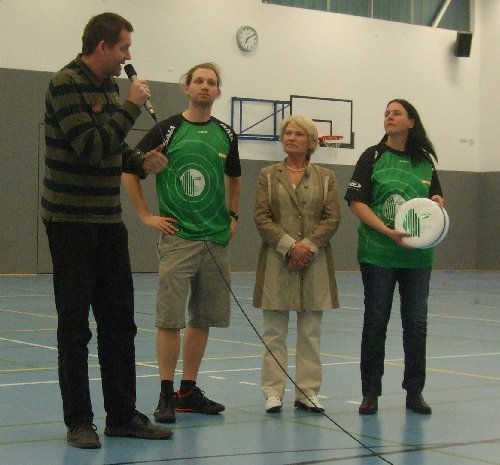 Bei der kleinen Eröffnungsfeier, ebenso wie die ganze Veranstaltung hervorragend organisiert von Martin Reckmann, wurden drei kurze Reden gehalten, zunächt von der Vereinsvorsitzenden Hedwig Liekefedt, dann von der Münsteraner Bürgermeisterin Karin Reismann sowie abschließend von mir. Es blieb nicht viel mehr zu sagen als, wie toll die Veranstaltung ist, auch vor dem Hintergrund, dass es vor 20 Jahren noch gar keine Spieler unter 20 Jahren gab! Ich habe die Teilnehmer auf die „Bedeutung für das Leben“ hingewiesen, die mit dem Prinzip verbunden ist, öfter einmal eine neutrale Perspektive einzunehmen, und die anstehenden Ziele erwähnt, sportlich Weltmeisterschaften in Japan und der Junioren in Irland, sowie administrativ den Beitritt zum Deutschen Olympischen Sportbund anzustreben.