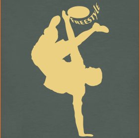 Die neuen Shirts sind nur ein Hobby von Claudius, sie sind in Bioqualität gefertigt und auf Wunsch kann er auch andere Designs gestalten. Neben der Rubrik Frisbee, bei der außer Ultimate auch Freestyle vertreten ist, bietet er auch die Rubrik Bike an. Von besonderem Charme ist für mich aber das Motiv „Horizontal Hombre“, das ursprünglich von einem der besagtem Brüder stammt.