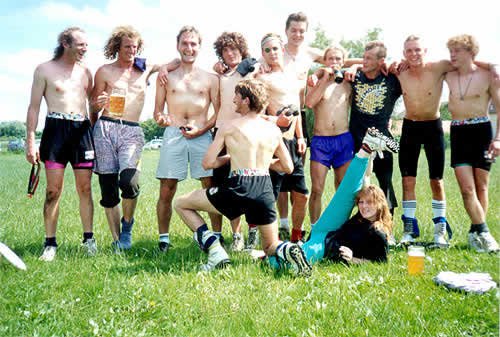 Die erste Turnierteilnahme folgte beim „Savage Seven“ in Karlsruhe. „Wieso rufen die alle „Acht“?“, fragten wir uns anfangs, ehe wir den Warnruf „Up!“ kennen lernten (dadurch wissen die Mitspieler, jetzt kommt ein Pass) – und verloren alle Spiele bis auf eines gegen die Essener Frauen.