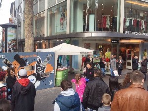 Der Pokal des Frauenmeistertitels ist da – Neue Flyer sind in Vorbereitung – Zahlreiche Termine stehen an. Einige Neuigkeiten, auf die ich in dieser Sammelmeldung hinweisen möchte. Am Palmsonntag, 24. März, findet ein verkaufsoffener Sportsonntag in der Kölner Innenstadt statt. Wie bereits im Vorjahr wird die Frisbeesport-Abteilung des ASV Köln, U de Cologne und Frühsport 0,2, mit einem Stand samt Wurfwand vertreten sein (Foto vom Vorjahr). Interessierte können sich gerne bei mir melden oder einfach auf der Schildergasse vorbeischauen zwischen 10:00 und 17:00 Uhr.